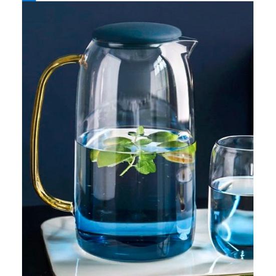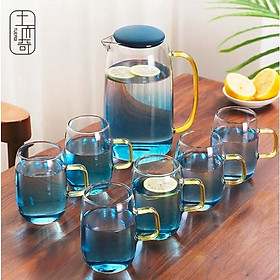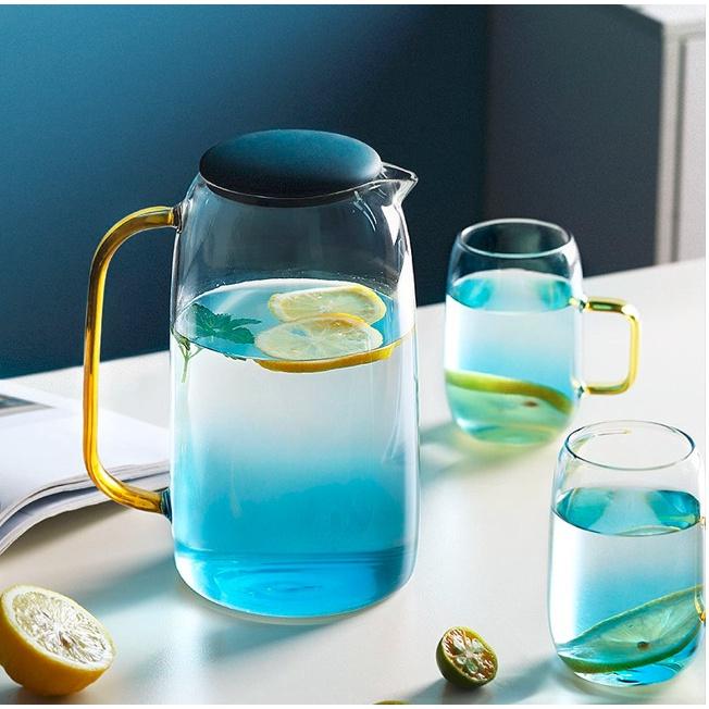✨Bình đựng nước thủy tinh kèm 6 cốc màu xanh nước biển