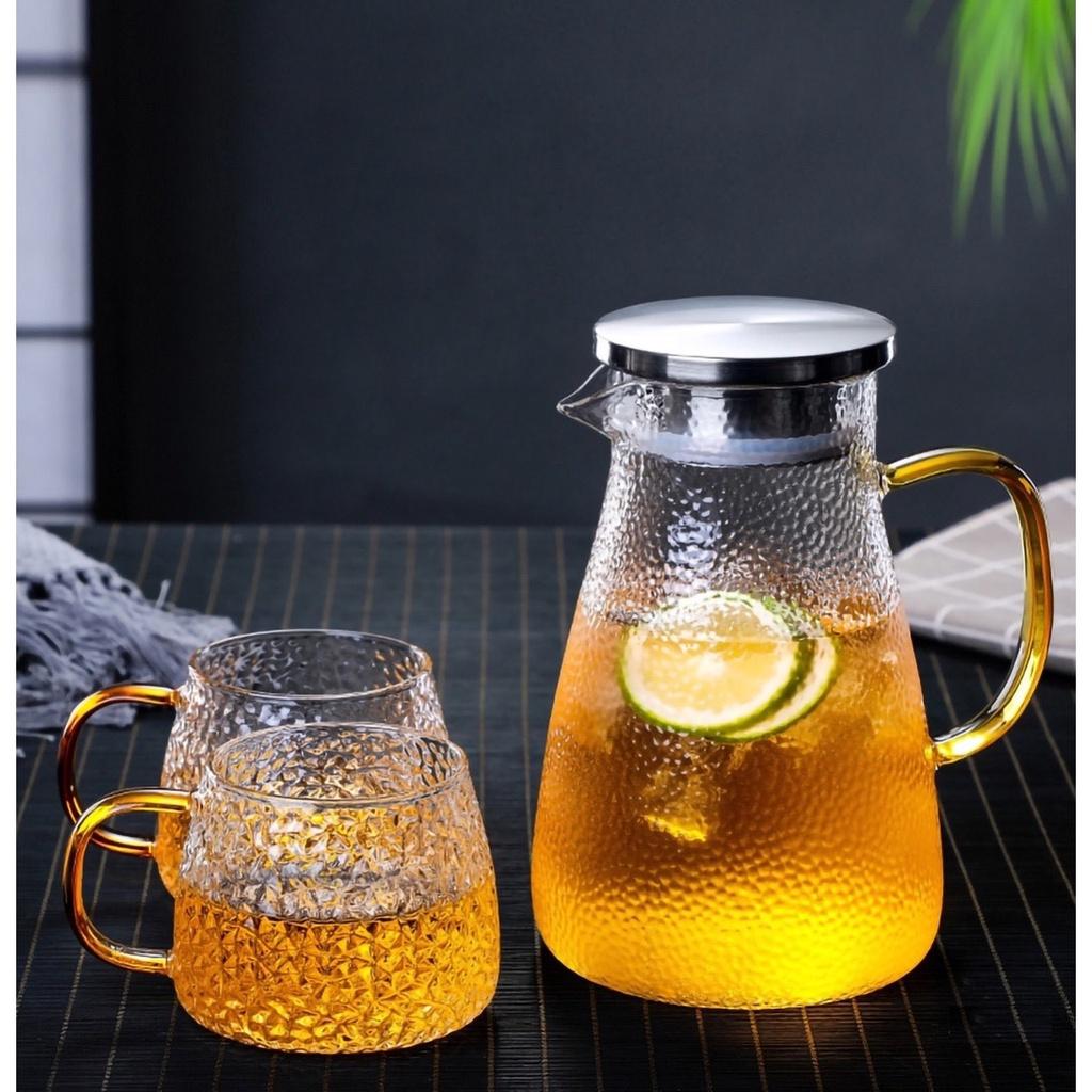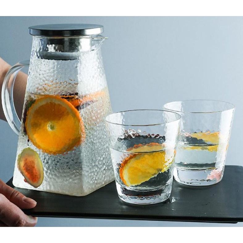 BÌNH NƯỚC THỦY TINH Chất thủy tinh thổi thủ công, có độ giãn nở cao theo nhiệt độ, bạn hoàn toàn có thể ướp lạnh trong tủ lạnh rồi mang ra ngoài, chế thêm nước sôi vào cũng không bị nứt vỡ do thay đổi nhiệt độ đột ngột, tăng tuổi thọ cho sản phẩm, giảm thiểu những tai nạn không đáng có khi sử dụng. Dáng bình thiết kế, đơn giản độc đáo mà vẫn đảm bảo độ thẩm mỹ, phù hợp dùng trong gia đình cũng như ở nơi công sở. Bình thủy tinh trong vắt, có thể nhìn xuyên thấu, tăng tính thẩm mỹ khi đựng nước trà hoa quả hay nước detox trái cây, tạo sự ngon mắt ngon miệng mà không phải sản phẩm nào cũng có được. Nắp bình bằng inox 304 không gỉ, gioăng silicone chống tràn. LƯU Ý KHI SỬ DỤNG