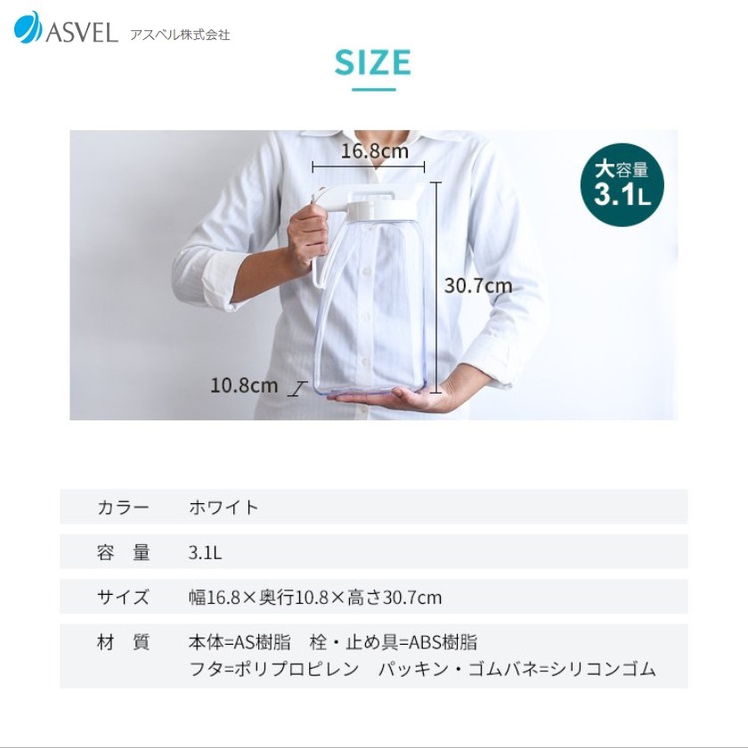 Bình đựng nước uống lạnh Asvel Drink Vio 2.1L hàng nội địa Nhật Bản