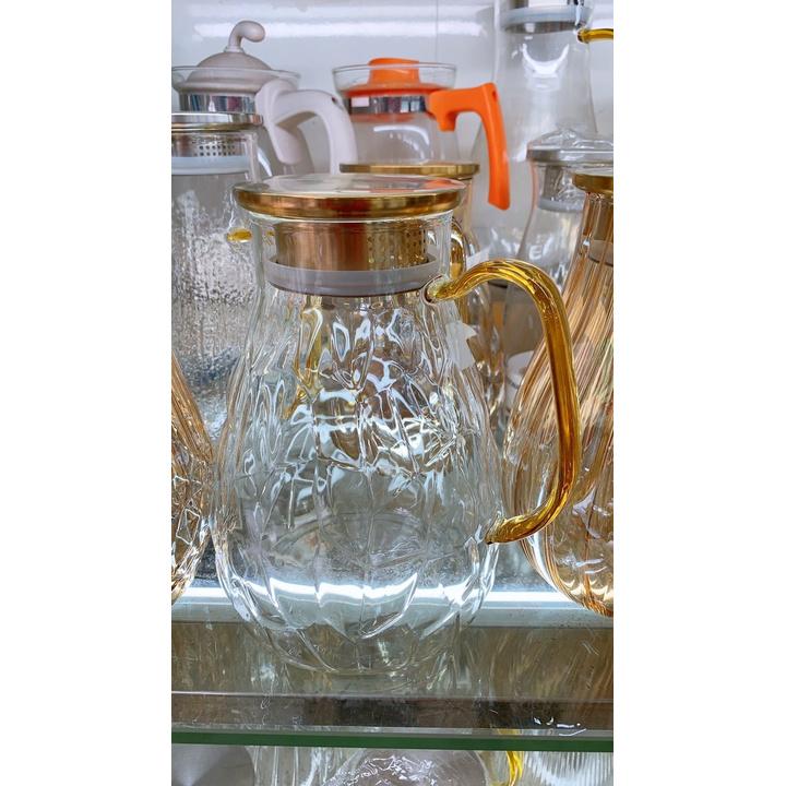 Bộ Bình Cốc Uống Nước Thuỷ Tinh Hổ Phách Cao Cấp 8 Chi Tiết Sang Trọng Độ Bên Cao M04