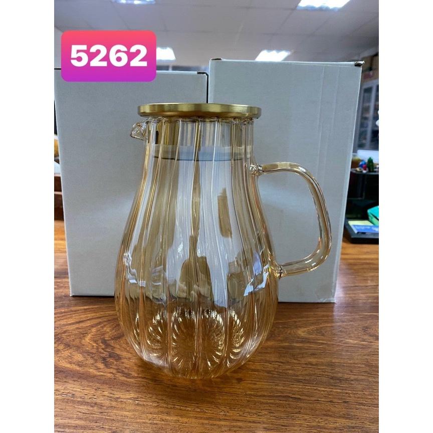✨Bình đựng nước uống thủy tinh vàng vân sọc bầu