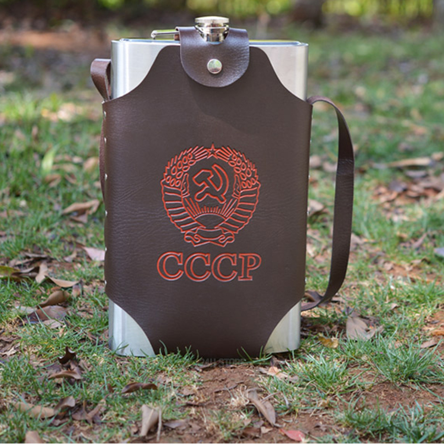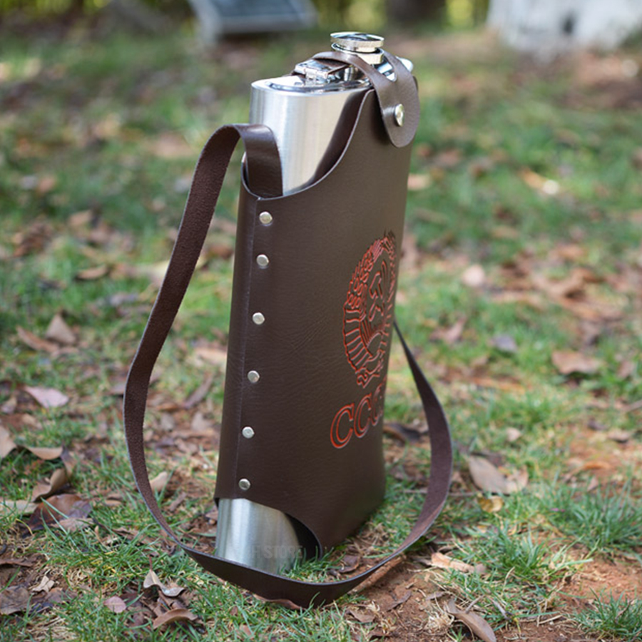 Logo CCCP vàng tươi được in độc đáo lên thân bình và dập nổi tinh tế lên bao da.