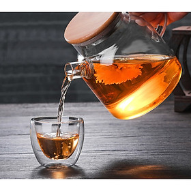 Bình Đựng Trà Thủy Tinh Nắp Gỗ Vòi Cụt Đủ Size 700ml, 1000ml