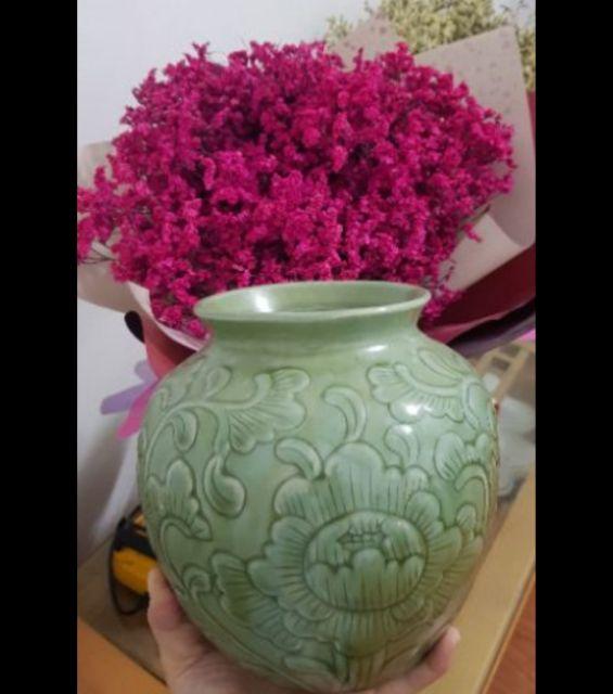 Bình hoa cao cấp Bát Tràng, hàng chuẩn loại 1, dáng chum họa tiết đắp nổi được thực hiện thủ công 100% bởi bàn tay lành nghề của các nghệ nhân làng nghề. Sản phẩm