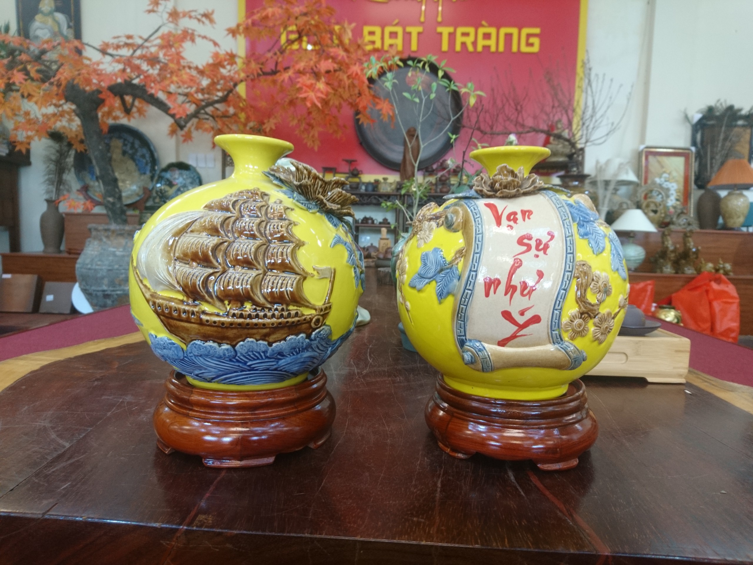 Giới thiệu bình tài lộc vẽ vàng kim thuận buồm xuôi gió gốm sứ Bát Tràng