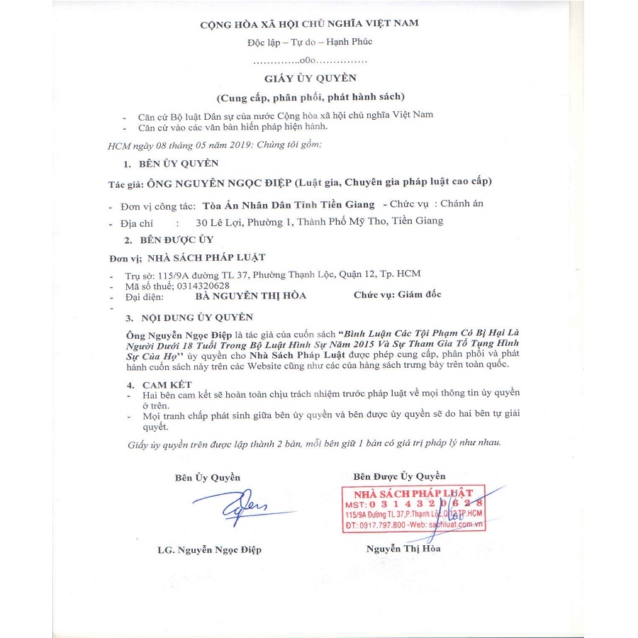 Nhằm giúp bạn đọc nói chung, những người làm công tác pháp luật nói riêng, tìm hiểu và năm vững các quy định của Bộ luật Hình sự và Bộ luật Tố tụng hình sự về người chưa thành niên là người bị hại, Nhà xuất bản Lao Động – Xã Hội cho xuất bản cuốn sách: Bình Luận Các Tội Phạm Có Bị Hại Là Người Dưới 18 Tuổi Trong Bộ Luật Hình Sự Năm 2015 Và Sự Tham Gia Tố Tụng Hình Sự Của Họ  Sách do Luật gia, chuyên gia pháp luật cao cấp Nguyễn Ngọc Điệp biên soạn. Ngoài ra, phần phụ lục cuốn sách còn in các văn bản hướng dẫn thi hành Bộ luật hình sự mới nhất để bạn đọc tiện tra cứu và áp dụng khi cần thiết. Nội dung cuốn sách bao gồm: - PHẦN THỨ I: Bình luận các tội phạm có bị hại là người dưới 18 tuổi trong bộ luật hình sự năm 2015 được sửa đổi, bổ sung năm 2017 - PHẦN THỨ II: Sự tham gia tố tụng hình sự của bị hại là người dưới 18 tuổi -PHẦN THỨ III: Các văn bản hướng dẫn thi hành bộ luật hình sự -PHẦN THỨ IV: Các quy định về thủ tục tố tụng hình sự đối với người dưới 18 tuổi -PHẦN THỨ IV: Các quy định về phòng xử án và quy chế tổ chức phiên tòa Hy vọng cuốn sách sẽ có giá trị hữu ích đối với bạn đọc. Sách đẹp, khổ 20*28 cm, dày 400 trang, Giá: 395.000đ. Nộp lưu chiểu quý II / 2019