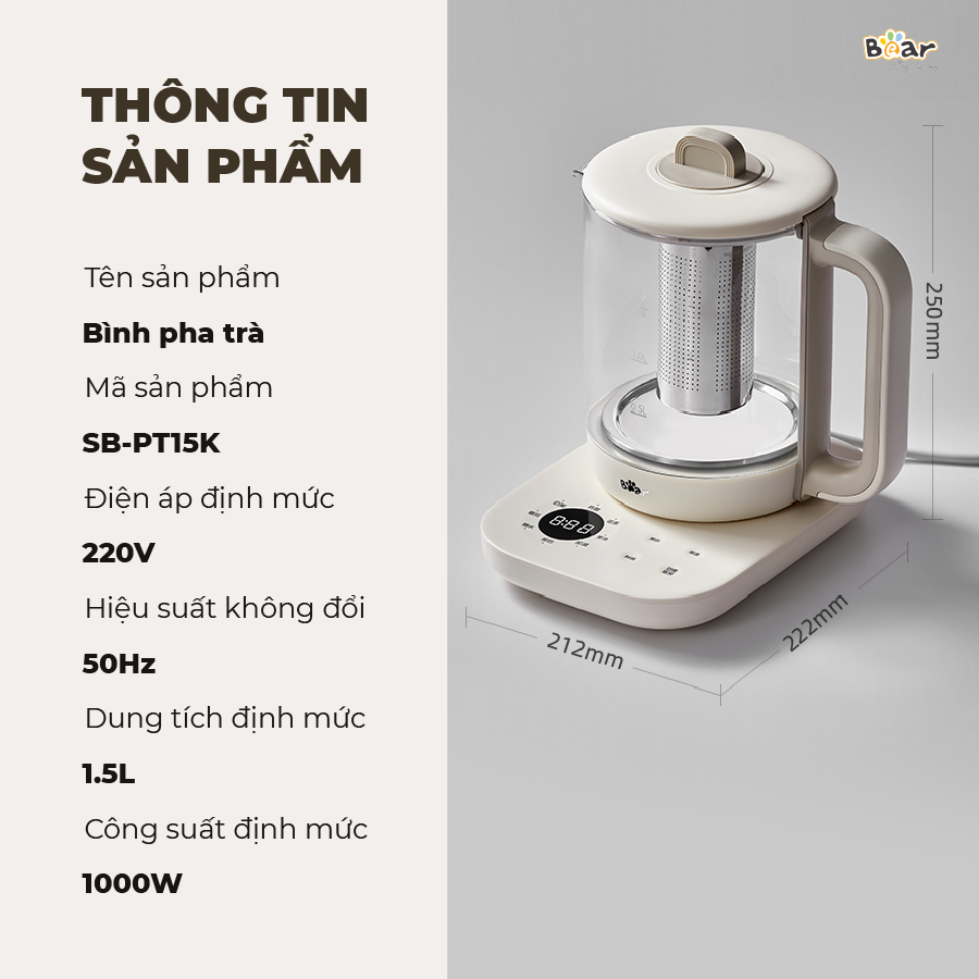 Bình Pha Trà BEAR SB-PT15K 1,5L 1000W Giữ Nhiệt Hẹn Giờ Lên Đến 9 Tiếng Bảo Hành 18 Tháng