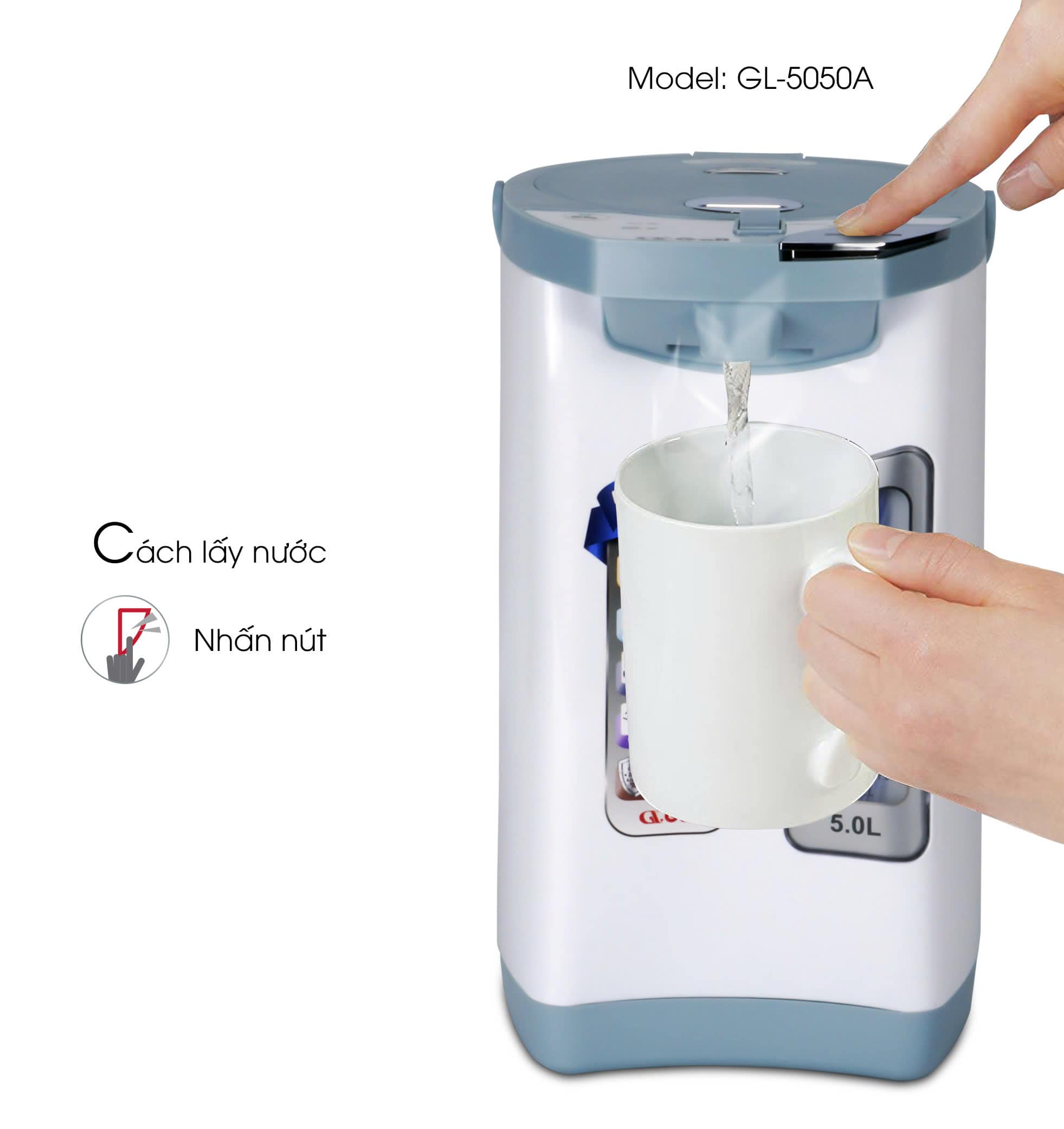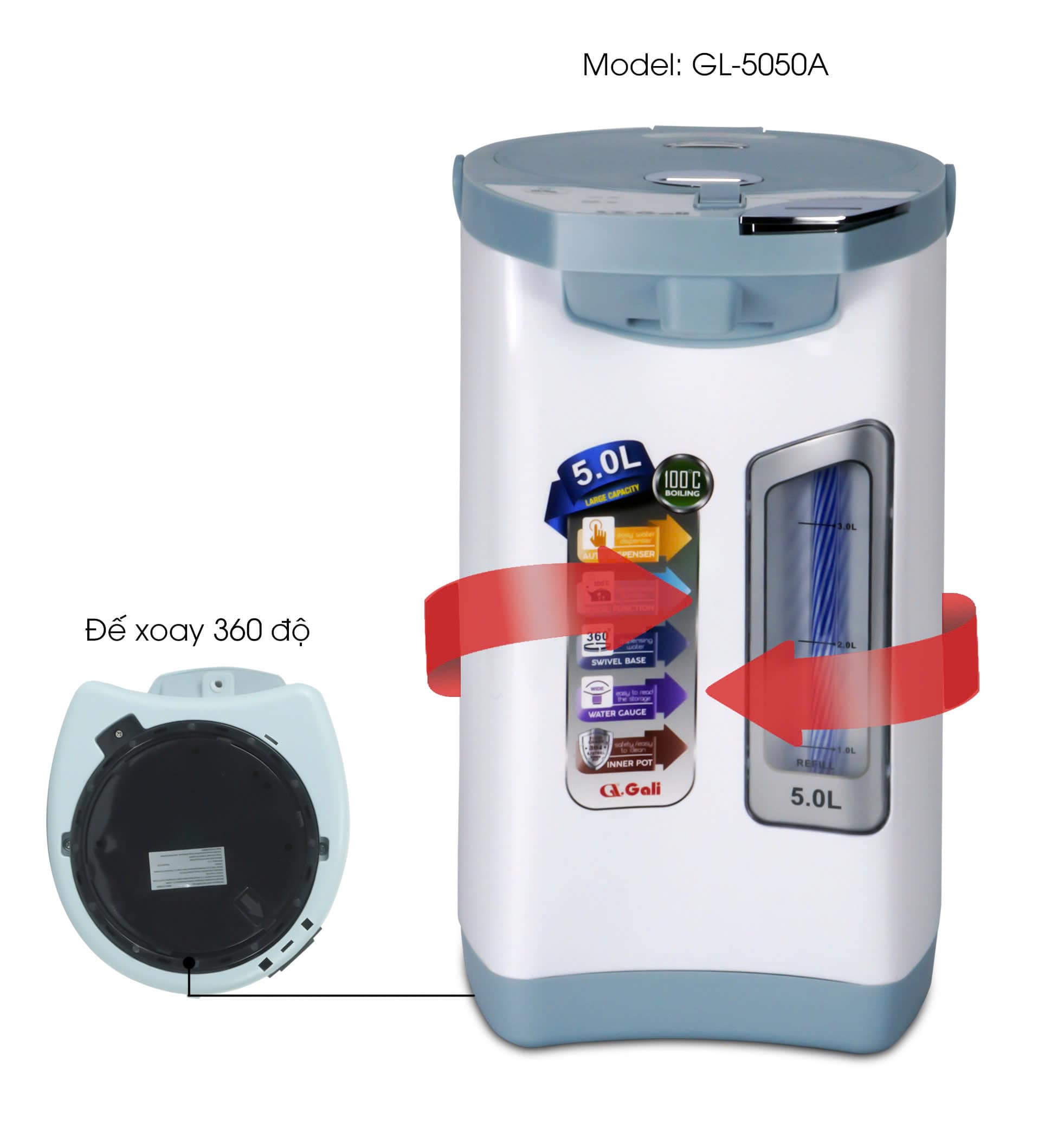 ✨Bình Thuỷ Điện Gali GL-5050A Dung tích 5L nhỏ gọn, Thân bằng nhựa nguyên sinh cao cấp, lòng trong bằng Inox 304 dày chất lượng. Hàng chính hãng chất lượng cao bảo hành 24 tháng.