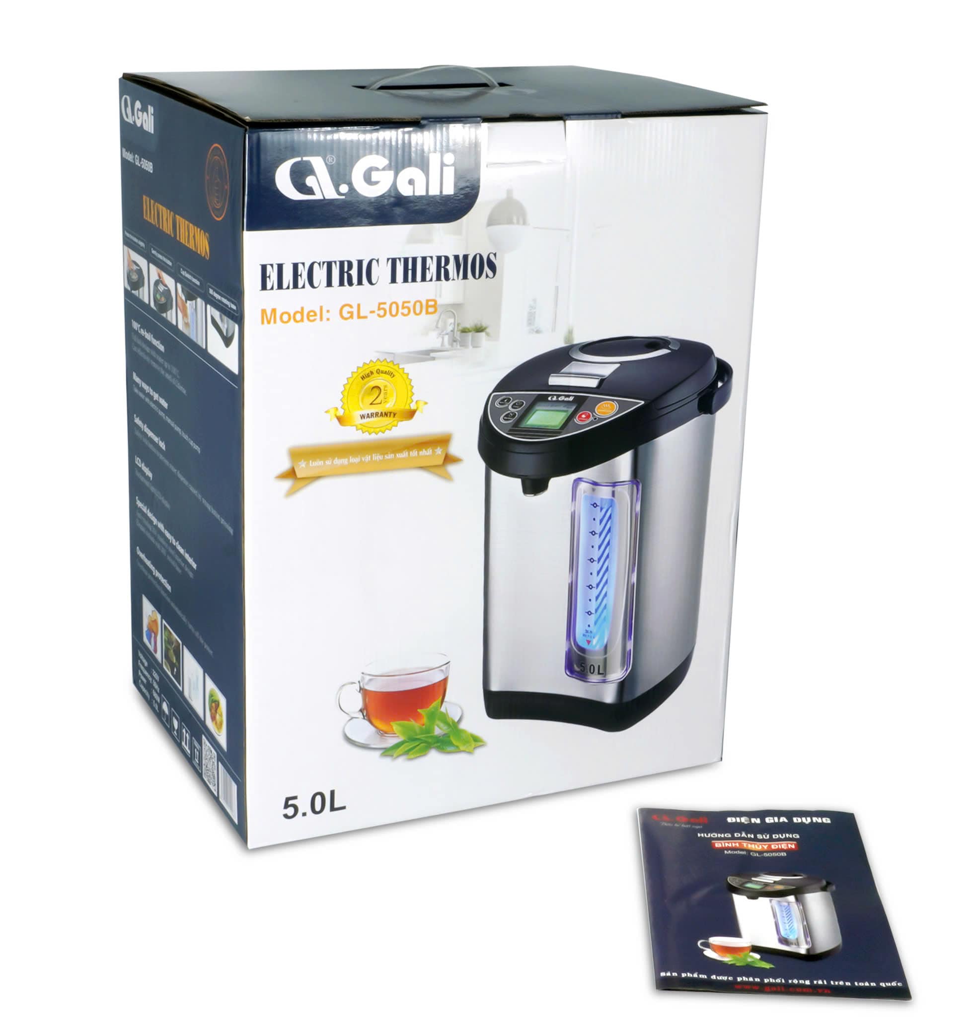 Bình thủy điện Gali GL-5050A 5 Lít - Dung tích 5 lít, công suất 680w/220Vac-50Hz. - Cấu tạo 2 lớp chống nóng, vỏ ngoài thép sơn tĩnh điện mầu trắng sang trọng, thân trong inox