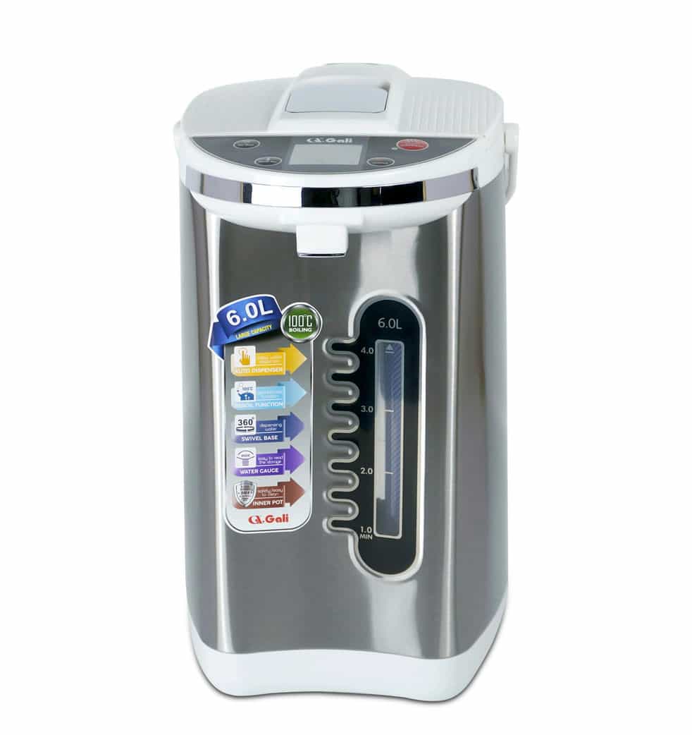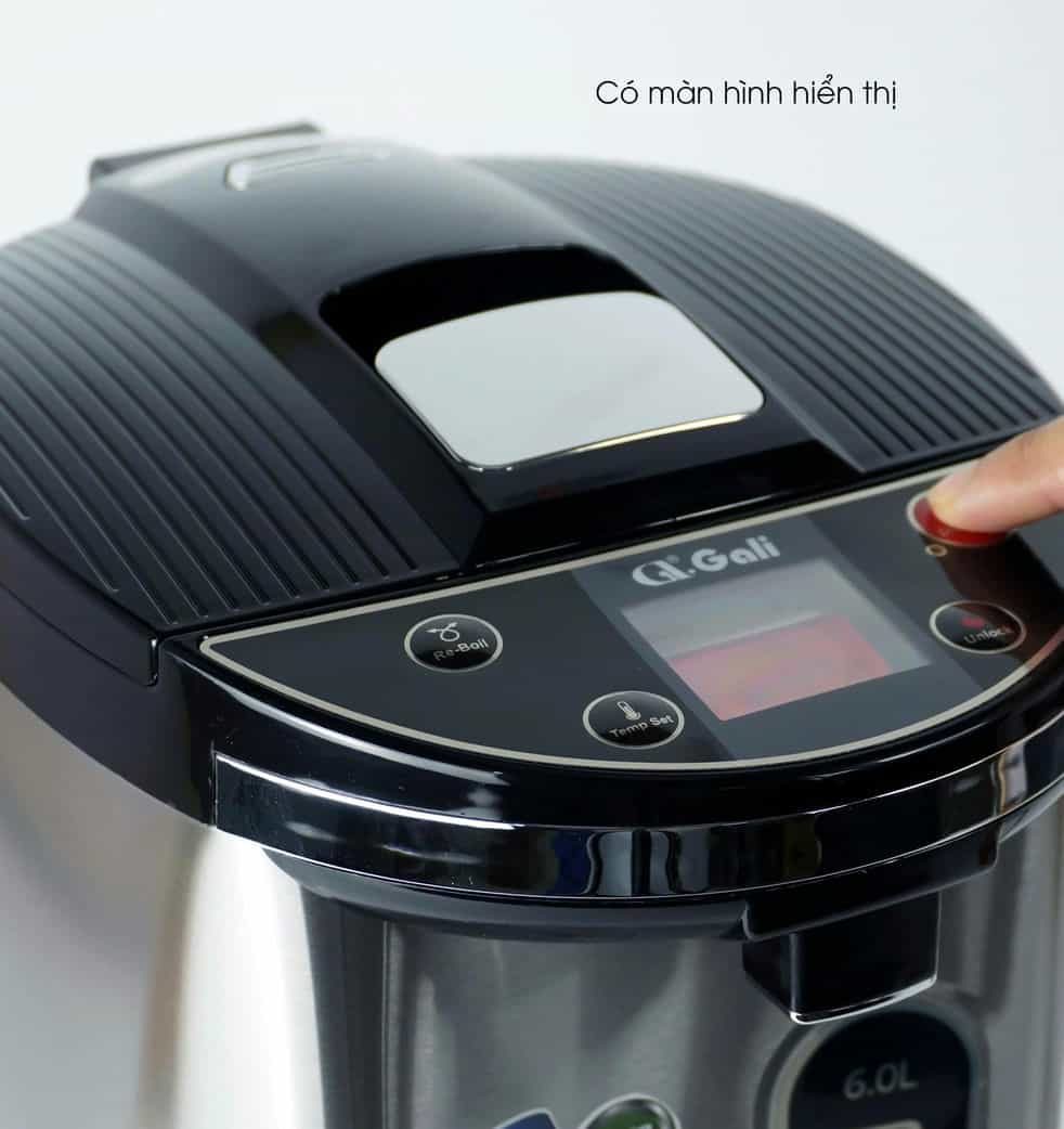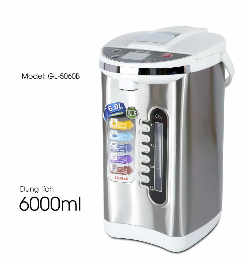 Bình thủy điện Gali GL-5060B 6 Lít - Dung tích 6 lít, công suất 680w/220Vac-50Hz. - Cấu tạo 2 lớp chống nóng, vỏ ngoài inox sang trọng, thân trong inox 304 không phôi nhiễm, an