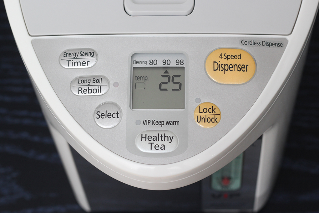 - Dung tích: 4.5 lít - Công suất: 700W - Chức năng: Đun sôi, Giữ nóng - Mức nhiệt giữ nóng: 3 mức: 60, 85, 98°C - Hẹn giờ đun sôi: Sau 6 tiếng -