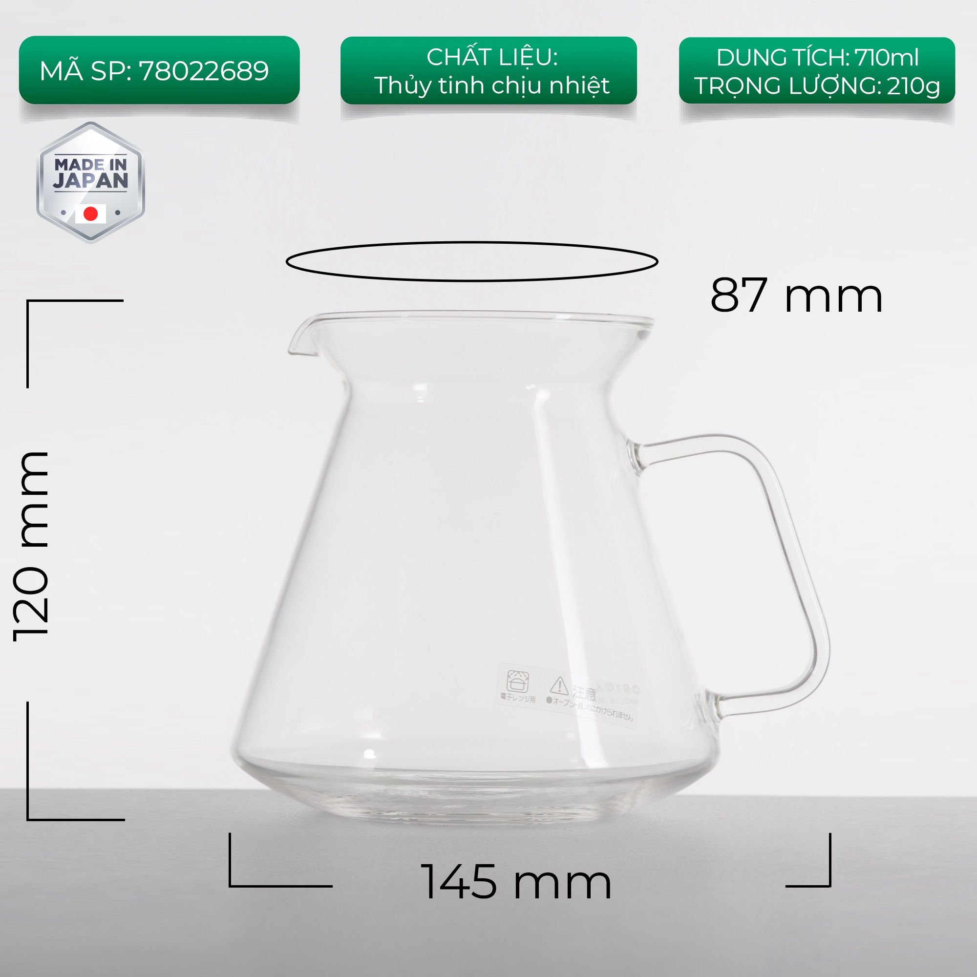 Kích thước: W145 x Đường kính Φ87 x H120 mm Khoảng 710 ml (khi đầy)