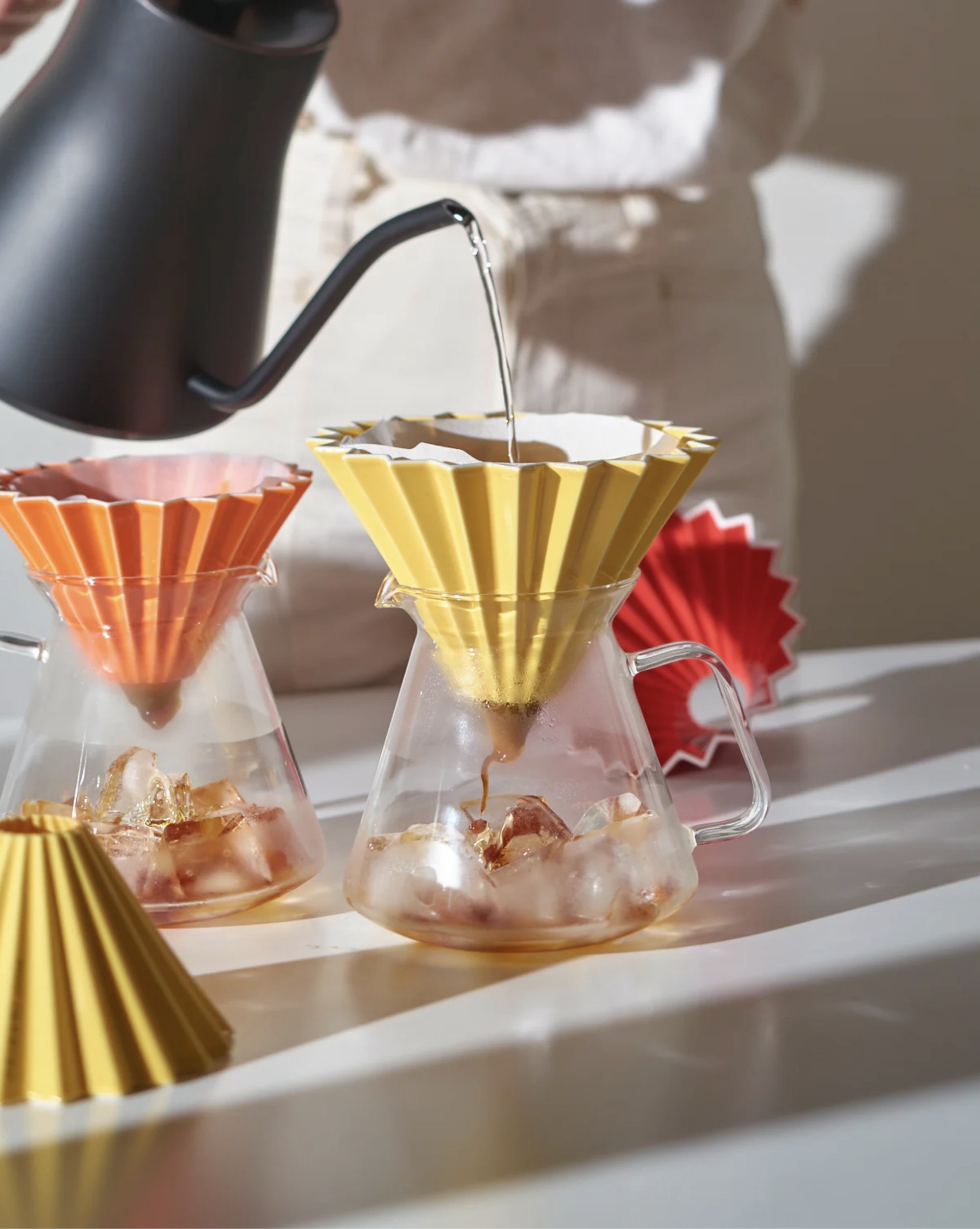 Bình thủy tinh ORIGAMI này dựa trên phong cách HARIO nổi tiếng, nhà sản xuất thủy tinh chịu nhiệt duy nhất tại Nhật Bản. Với thiết kế có thể đặt phễu pha lên trên như một thể thống nhất vừa đơn giản nhưng lại rất nổi bật.