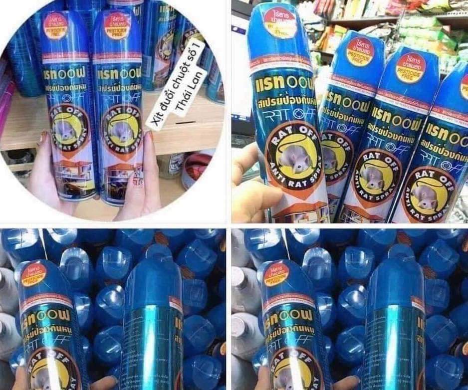- Xịt đuổi chuột Thái Lan Rat-Off đuổi sạch chuột, tiêu diệt chuột sau 1 tuần xịt.