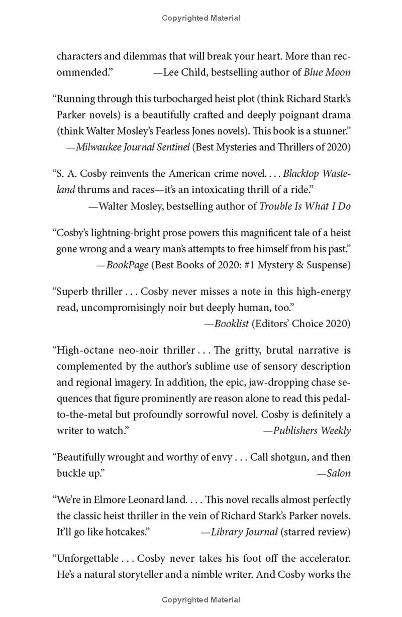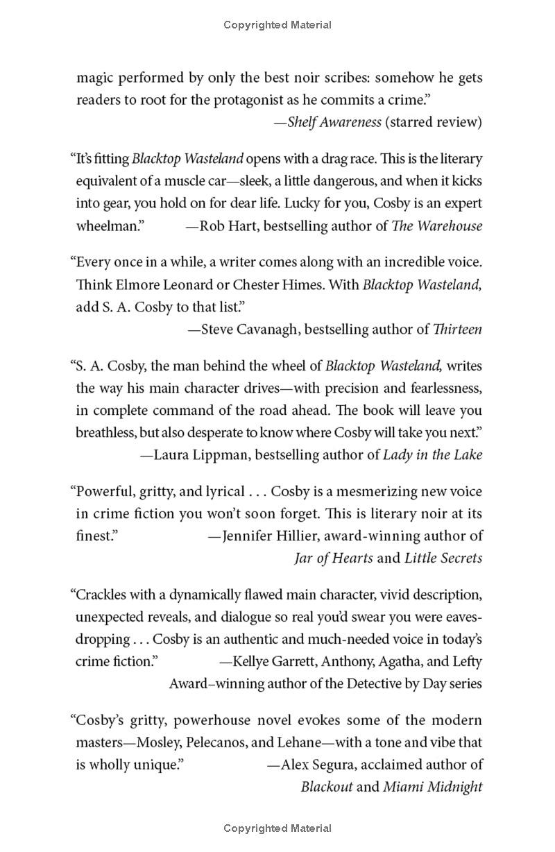 Like Ocean’s Eleven meets Drive, with a Southern noir twist, S. A. Cosby’s Blacktop Wasteland is a searing, operatic story of a man pushed to his limits by poverty, race, and his own former life of crime.