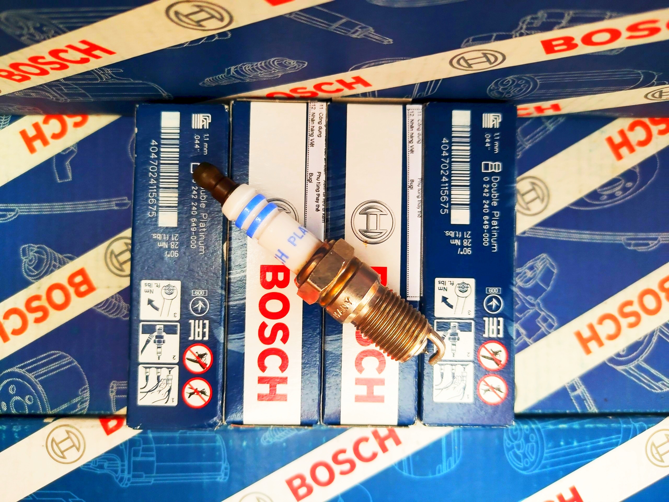 Bộ Bugi siêu cấp của Bosch với 4 điện cực âm bằng Platium gia cường cho phép đánh lửa đa hướng, tạo tia lửa điện cực mạnh và tuổi thọ cực cao lên đến 100.000