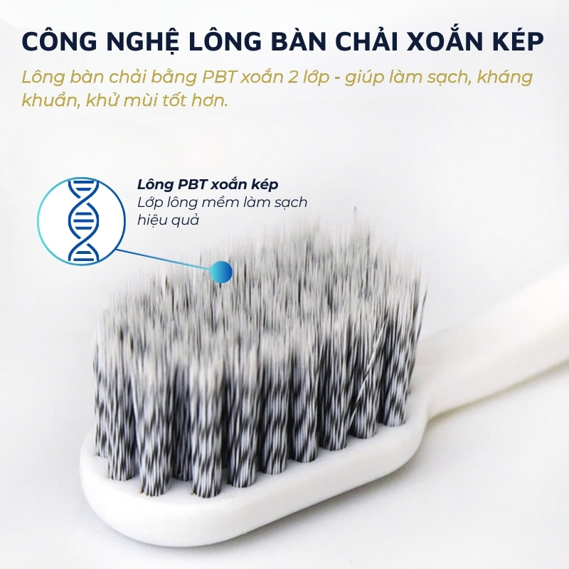 Nguyên liệu Cán bài chải: Nhựa polypropylene (PP) & thermoplastic Eplastomer (TPE) Cước: Nhựa polubutylene terephthalate (PBT) Cách sử dụng - Chải răng theo hướng dẫn của nha sĩ. - Rửa sạch bàn chải