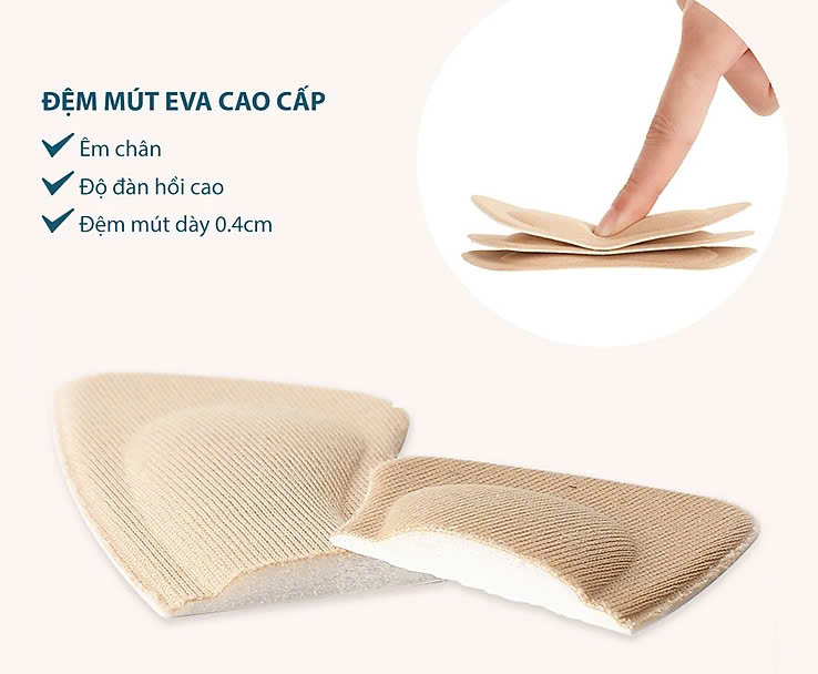 Chất liệu: mút cao cấp ép vải cotton thấm hút mồ hôi và cực êm Sản phẩm chỉ có MỘT size, dùng được cho các size giày nữ: 35 - 36 - 37 - 38