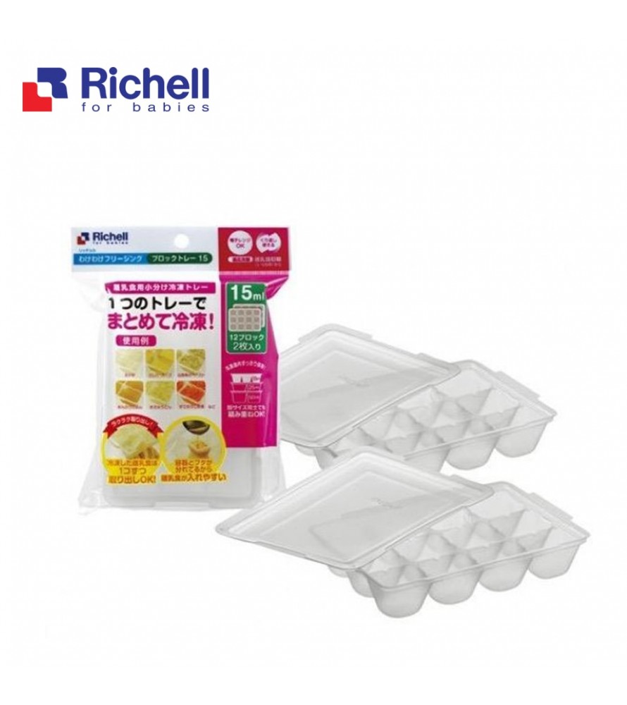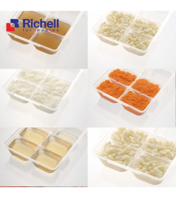 - Mỗi khay trữ đông Richell chia làm 6 ngăn nhỏ sâu lòng, đi kèm nắp đậy kín đảm bảo vệ sinh tối đa. Sản phẩm rất thích hợp để mẹ cất trữ khẩu phần riêng biệt cho con theo từng bữa (đặc biệt với các mẹ theo phương pháp ăn dặm kiểu Nhật).