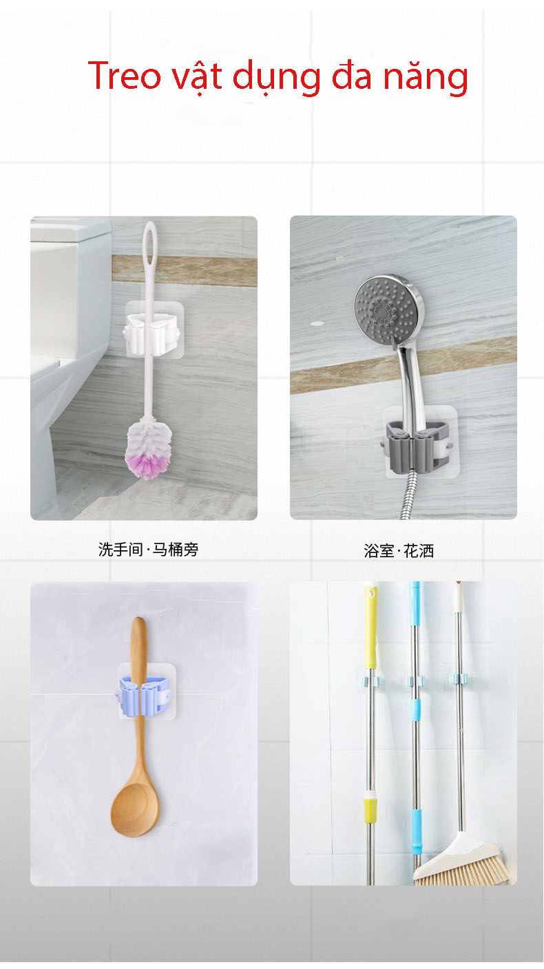 Móc dính treo chổi lau nhà tiện dụng Móc dính treo chổi lau nhà giúp bạn tận dụng tối đa diện tích của bề mặt tường nhà tắm, các mảng tường còn chống, để treo các