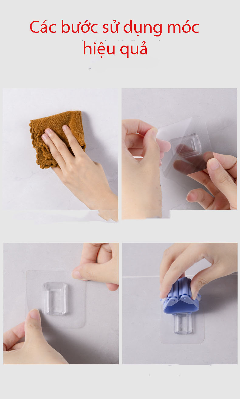 Móc dán tường siêu dính, siêu tiện lợi Sản phẩm được sử dụng linh hoạt, có thể dán vào bất cứ chỗ nào trên tường hoặc trên trần. Có thể sử dụng tại bếp, nhà