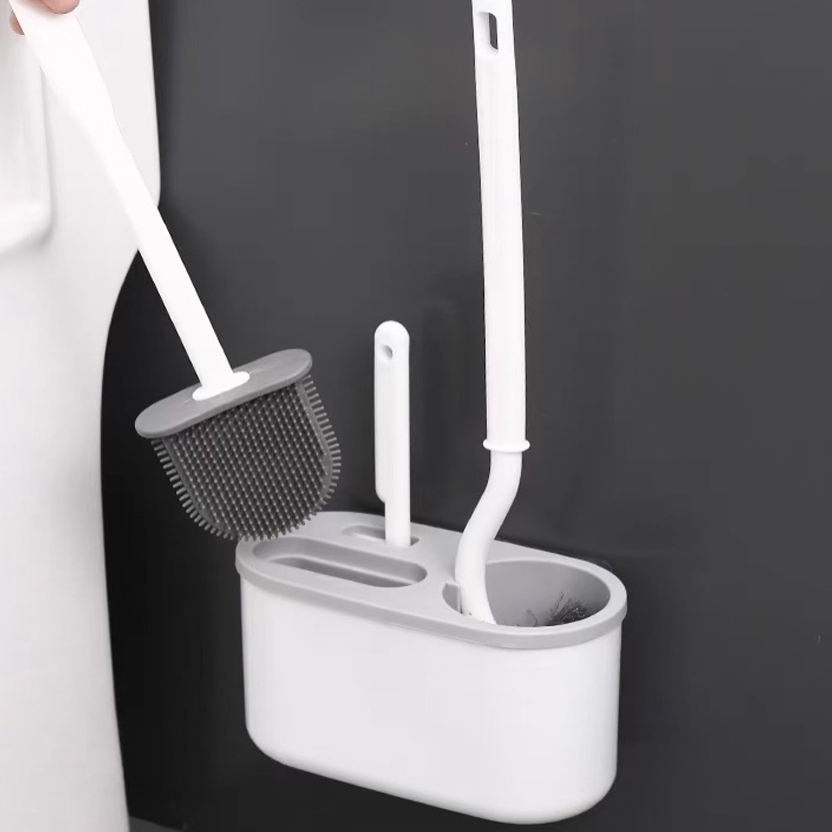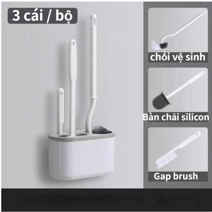 Bộ 3 chổi vệ sinh toilet xoay 360 độ treo tường cọ bồn cầu silicon 3in1 nhà tắm đa năng tiện lợi