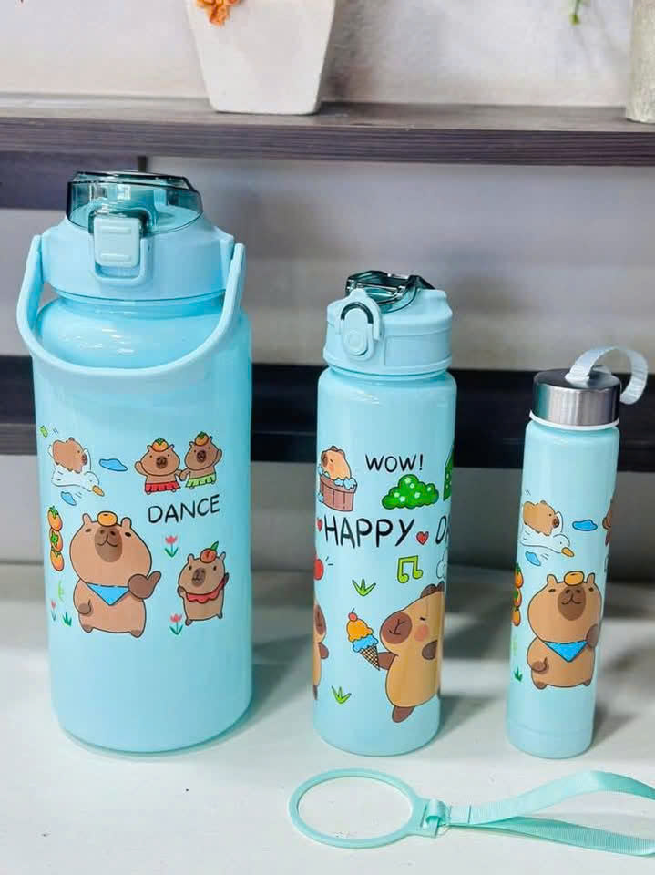 - Tránh để bình ở nơi có nhiệt độ quá cao hoặc tiếp xúc với hóa chất mạnh. Bộ 3 Bình Đựng Nước Capybara Có Quai Sách là sản phẩm tiện dụng và an toàn, giúp bạn dễ dàng mang theo nước uống mỗi ngày. Với thiết kế chắc chắn, dễ sử dụng và bảo vệ sức khỏe, đây là lựa chọn lý tưởng cho mọi gia đình, văn phòng hay những chuyến đi xa.