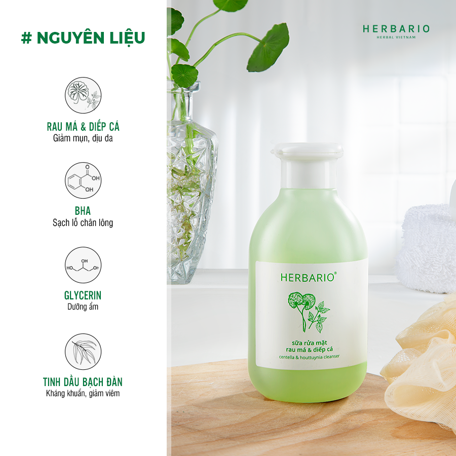 01 x Sữa rửa mặt Rau má & Diếp cá Herbario 200ml
