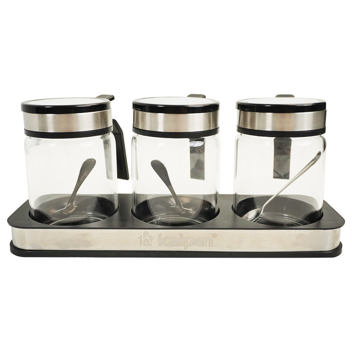 Bộ 3 hũ thủy tinh đựng gia vị 300ml Kalpen SB2 kèm khay và muỗng Inox - GIÁ RẺ Zalo ngay 0986588655