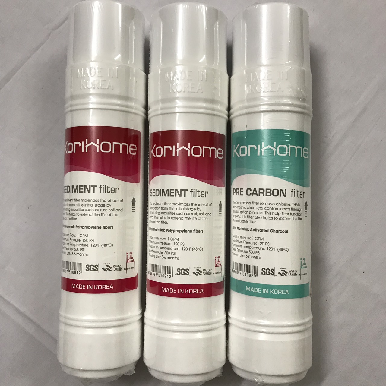- Thời gian thay thế: 3-6 tháng ( tuỳ vào nguồn nước dơ hay sạch và lưu lượng sử dụng) Lõi Pre cacrbon Korihome: