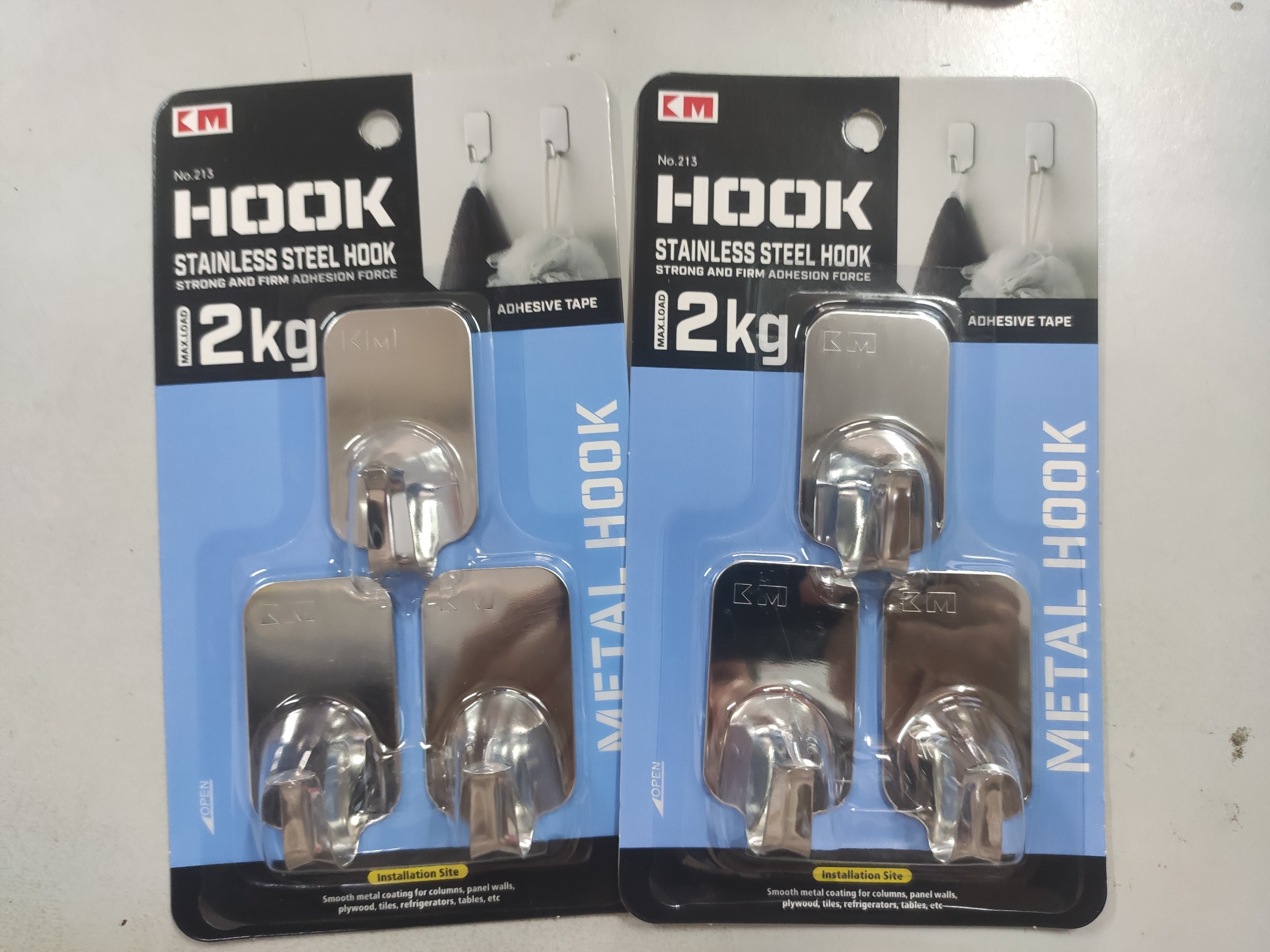- Móc dán tường 2kg KM-213 dán được lên những bề mặt có môi trường ẩm ướt bao gồm bề mặt kính, gương, gạch men, gỗ và bề mặt sơn.