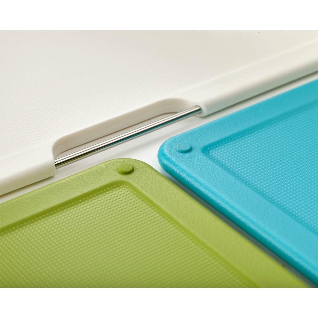 Bao gồm ba tấm ván hai mặt được mã hóa màu với bề mặt cắt có kết cấu thân thiện với dao và chân chống trượt