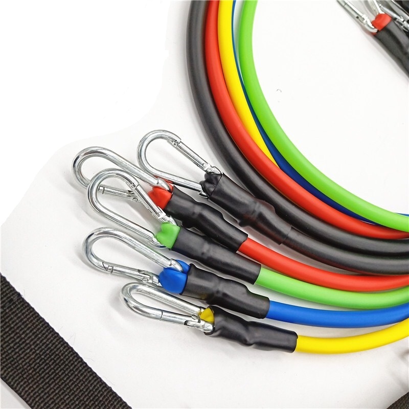 Bộ dây đàn hồi tập Gym 11 chi tiết chính hãng Rexchi Trọng lượng kéo của 5 dây là 100LB tương đương 45,2Kg Móc sắt hiện đại giúp bạn dễ dàng nâng hoặc giảm mức