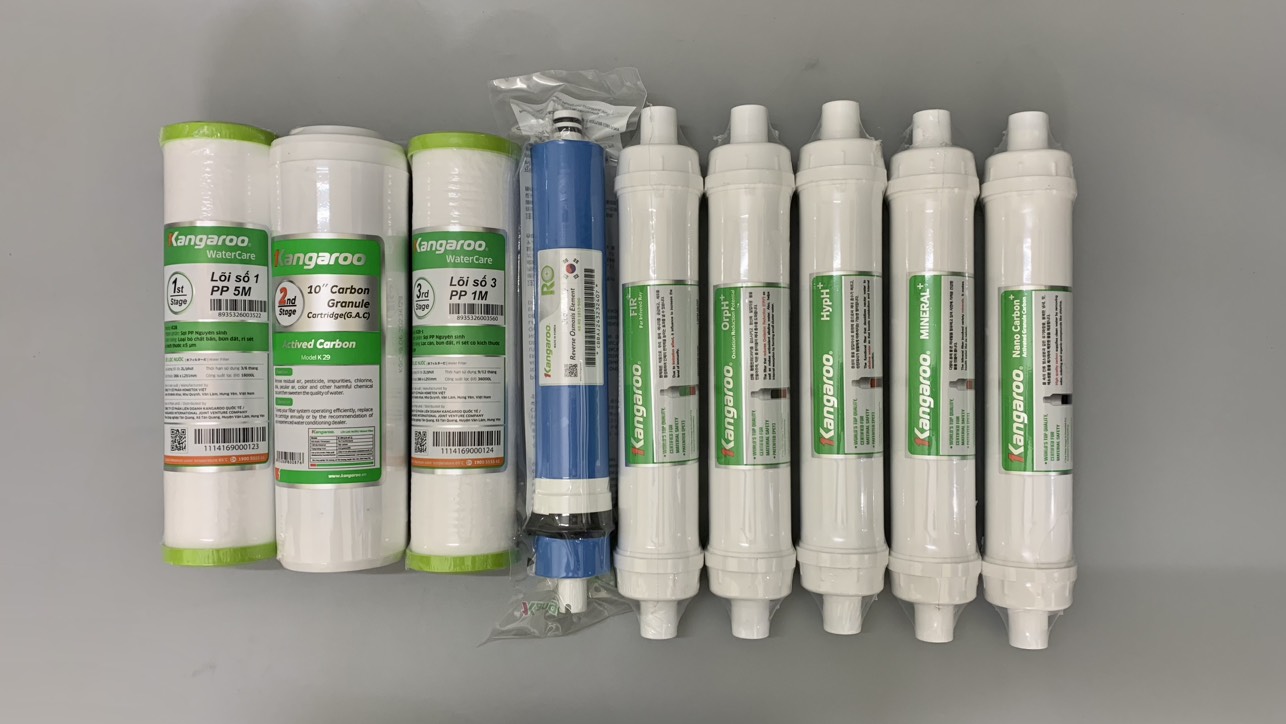 Thông tin sản phẩm Thương hiệu: Kangaroo Xuất xứ: Việt Nam Bảo hành theo chính sách của NSX Bộ 9 lõi bao gồm: Lõi số 1(PP 5 micron)