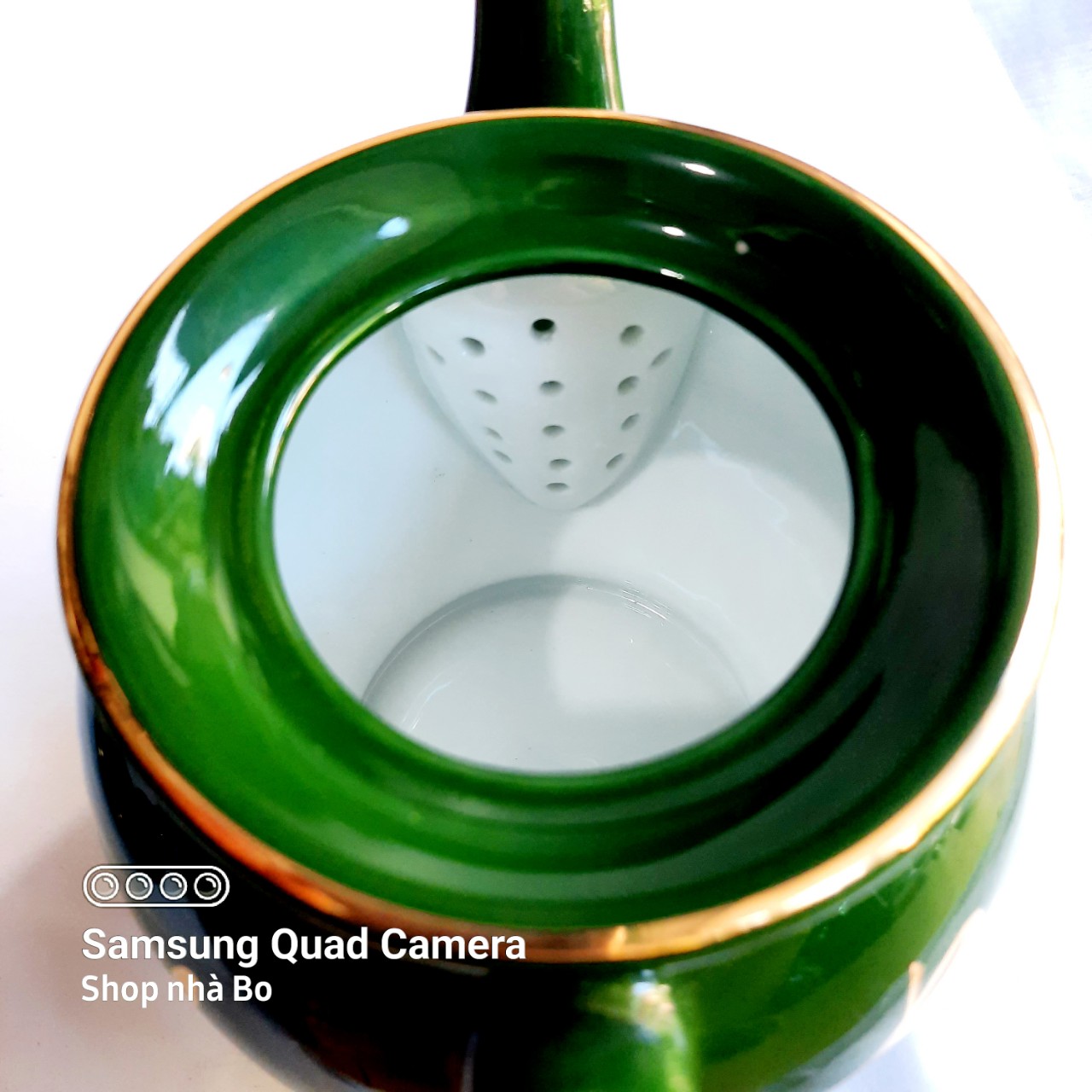 Ấm chén Bát Tràng cao cấp men xanh viền chỉ vàng kim Dung tích 450 ml Giá 550k