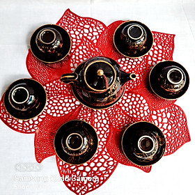 Mua tại TiktokBộ ấm trà men đen vẽ vàng 24k gốm sứ Bát Tràng cao cấp