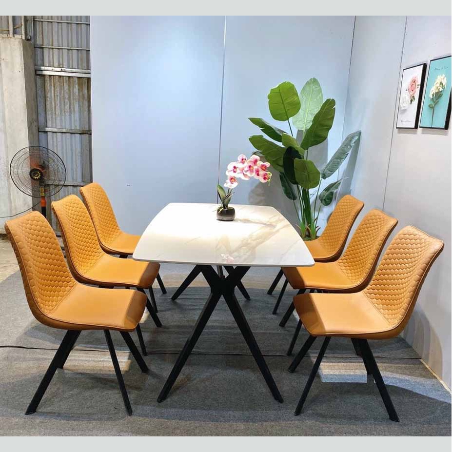 Giao bộ bàn ăn mặt đá Ceramic bóng chân chữ H kèm ghế Zena cho khách - noithatgiakho.com