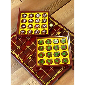 - Bàn cờ bằng gỗ đàn hương đỏ sáng màu, bên trong có khoét rãnh để vừa vặn quân cờ, rất tinh tế