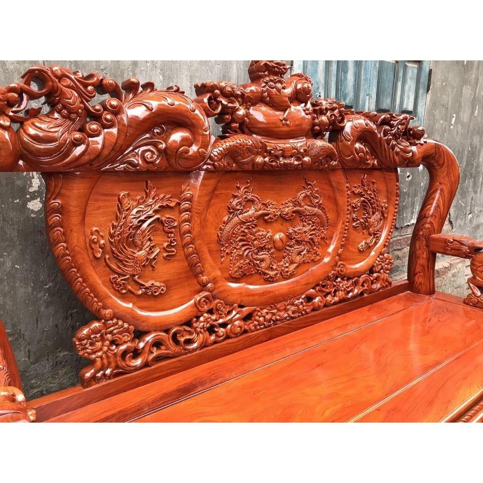 Bộ bàn ghế trạm nghê đỉnh tay khuỳnh gỗ hương nam phi mẫu mã phong thủy cực kì đẹp ! - Thông Tin Sản Phẩm : Kích thước : Tay 12 - Cột 12 Chất