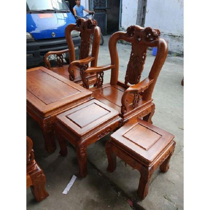 Bộ bàn ghế Minh Quốc Hồng Tầu cột 10 gỗ hương vân 23 triệu.