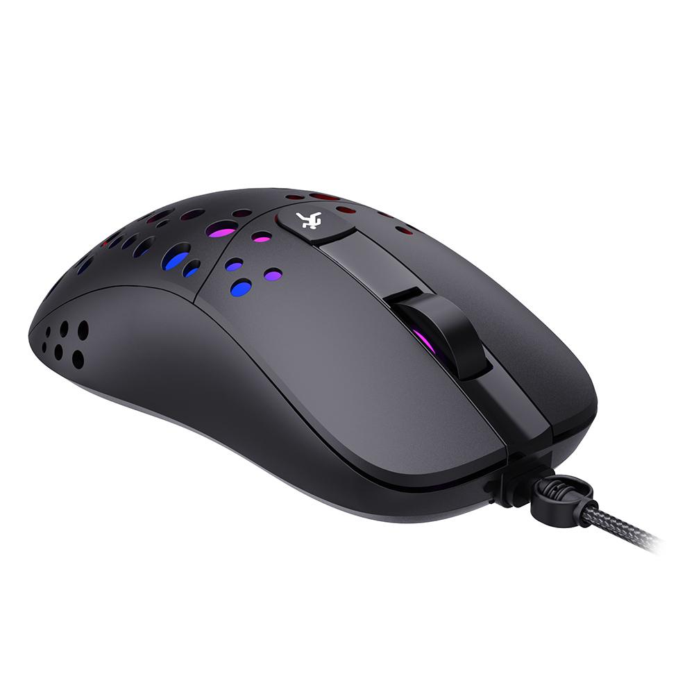 It is a professional esport gaming mouse: 3200 DPI high precision, 4-level adjustable DPI, cool breathing LED light, ergonomic design, bilateral anti-slip design, 6 buttons, game-grade scroll wheel, long keystroke life, hard-wearing braided-fiber cable with