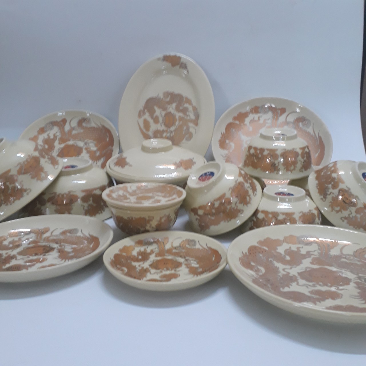BỘ BÁT ĐĨA THỜ CÚNG ĐẦY ĐỦ GỒM CÁC CHI TIẾT SAU: 6 bát cơm nhỏ rộng 10 cm, cao 4 cm kèm 1 bát nước chấm nhỏ hơn chút xíu. men mầu Vàng Họa tiết của bộ này có viền kim loại ở himhf tượng Rồng Phượng như sau 6 đĩa tròn có kính thước to nhỏ khác nhau và 1 đĩa bầu dục. 2 bát tô nhỏ đựng canh kèm 1 âu đựng cơm có nắp đậy xinh xắn. Tất cả cho vào 1 hộp giấy sang gọn chắc chắn có ghi nơi sản xuất và nguồn gốc xuất sứ rõ ràng. Shop tặng thêm 1 bộ đũa thờ gỗ họa tiết Song Long và bộ chén đĩa thờ cúng Bộ bátđĩa thờ cúng bằng sứ men lam hoa tiết Rồng Phượng chi tiết, tinh xảo và thê lớp viền kim loại để thêm phần linh thiêng. Đây là vật dụngvô cùng cần thiết khi dâng cúng tổ tiên, thần linh trong các ngày lễ tết giỗ chạp.