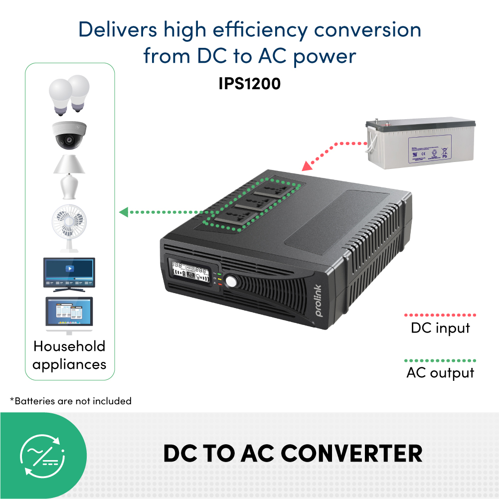 Bộ biến tần Prolink IPS1200 (1200VA/720W) ổn định điện áp, chống mất điện, dùng cho PC, thiết bị gia đình, hồ cá, CCTV... (KHÔNG BAO GỒM ẮC QUY) - IPS của Prolink là thiết
