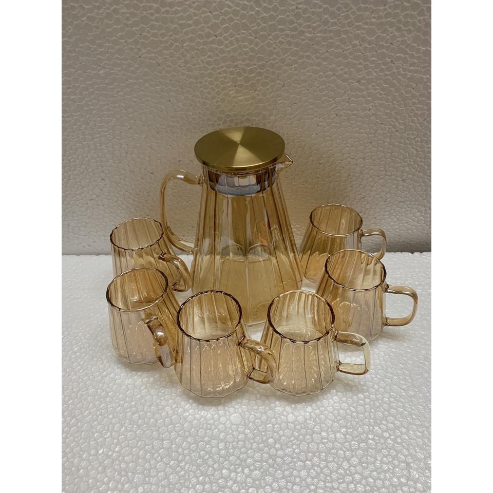 ✨BỘ BÌNH ĐỰNG NƯỚC UỐNG KÈM 6 CỐC THỦY TINH MÀU VÀNG GOLD CHỊU NHIỆT HÀNG CAO CẤP