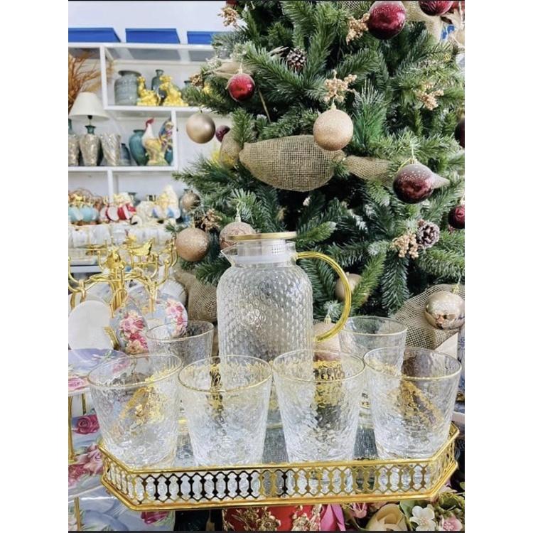 ✨Bộ bình đựng nước uống thủy tinh vân sần cốc loe thấp kèm khay