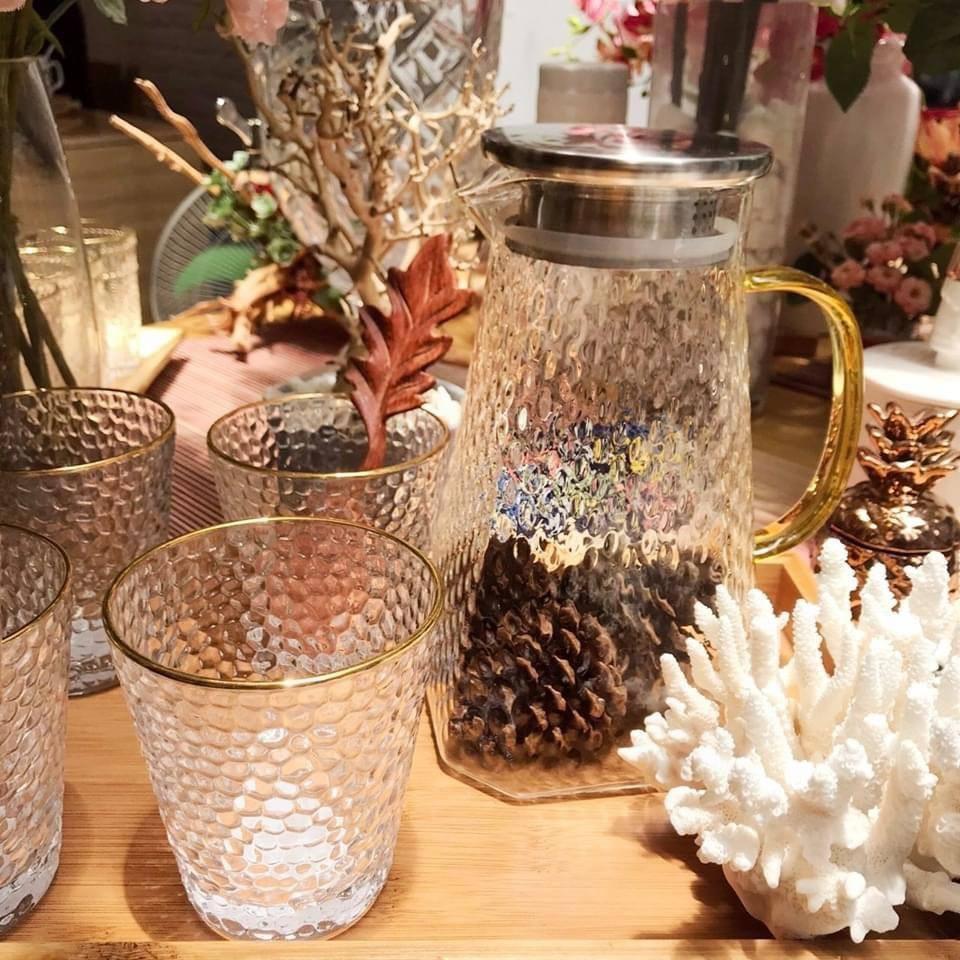 Bộ bình 6 cốc thủy tinh chịu nhiệt mạ vàng cao cấp