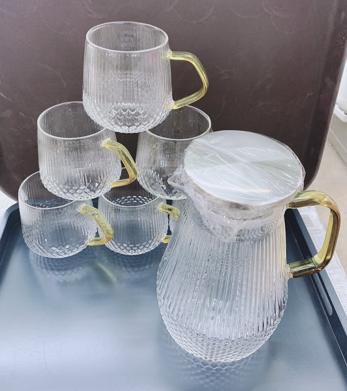 ✨BỘ BÌNH NƯƠC THỦY TINH CHỊU NHIỆT 2L CRYSTAN KÈM 6 CỐC QUAI VÀNG - ANTH415