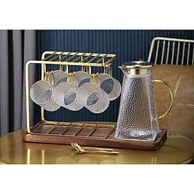 Bộ bình 6 cốc thủy tinh chịu nhiệt mạ vàng cao cấp