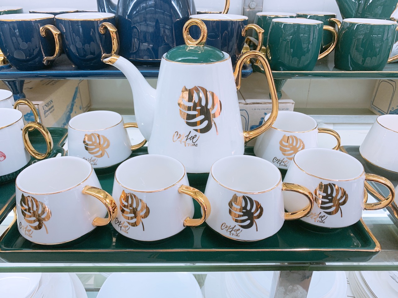 Bộ ấm chén kèm khay sứ pha trà cà phê siêu sang cho ngày Tết- Bộ cốc chén pha trà cà phê kèm khay bằng sứ