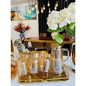 Bộ bình 6 cốc thủy tinh chịu nhiệt mạ vàng cao cấp